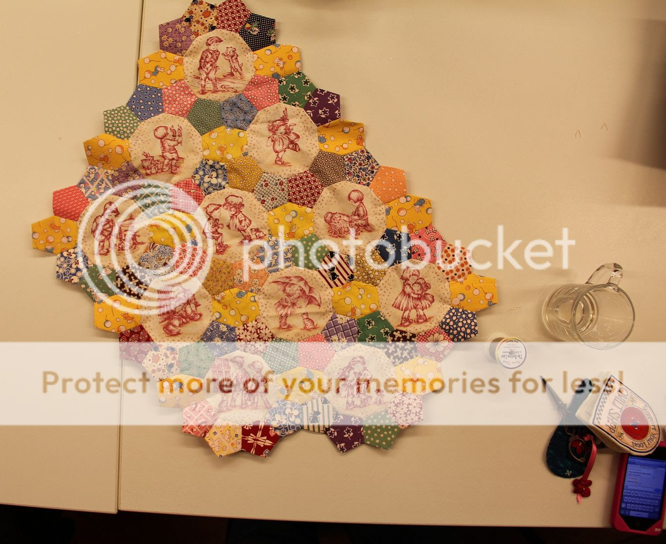 Die quiltdames op stof, wat een leuk patroon. Voor die verloting doe ik graag mee, jouw Moeder maakt zulke mooie gekleurde lapjes, daar kun je alleen maar van gaan kwijlen, lapje ligt al klaar (om de druppels op te vangen!)
